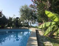 Popolna oaza za sprostitev z zunanjim bazenom, vrtno kabano in večjim zidanim barom.
