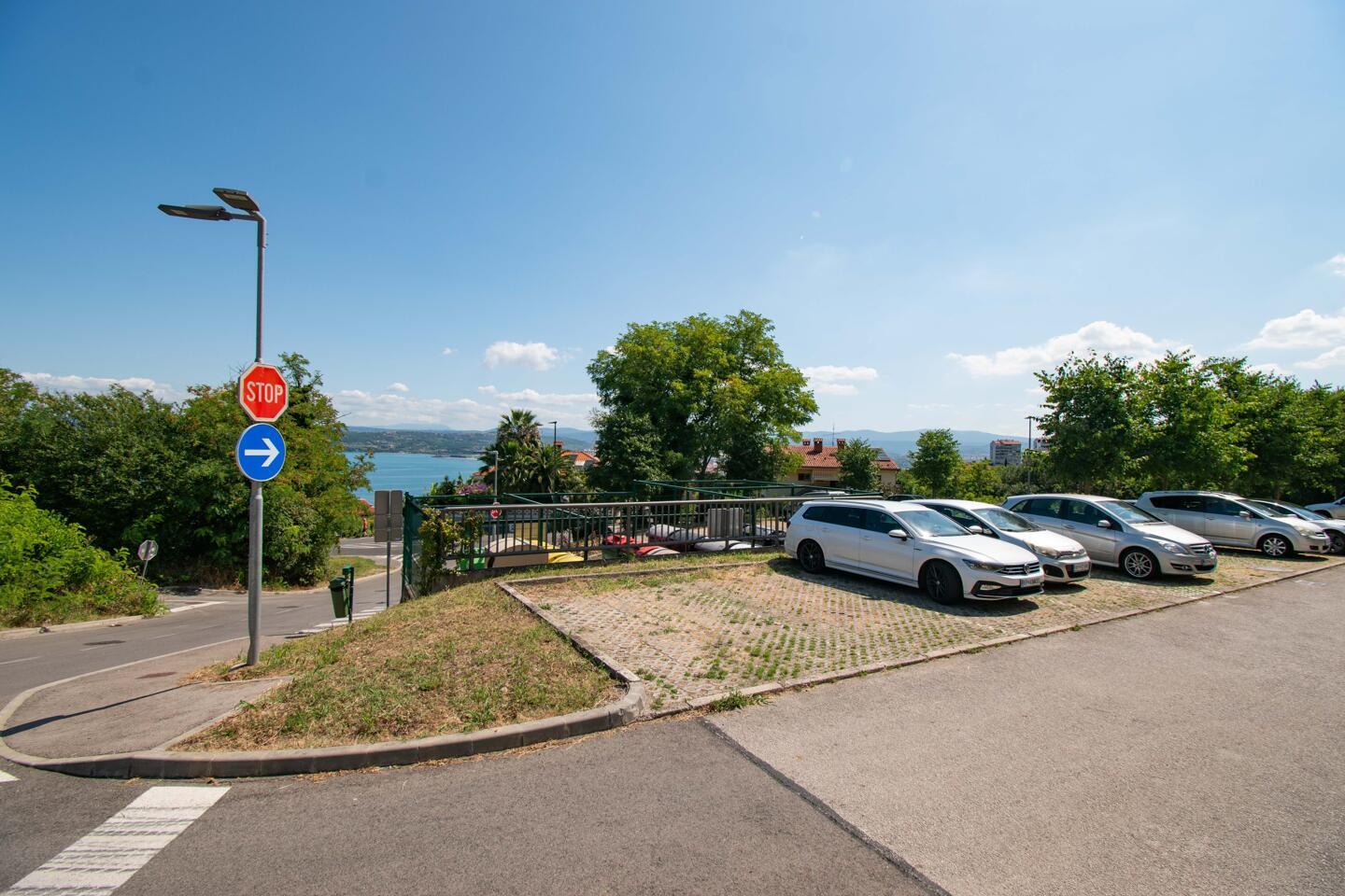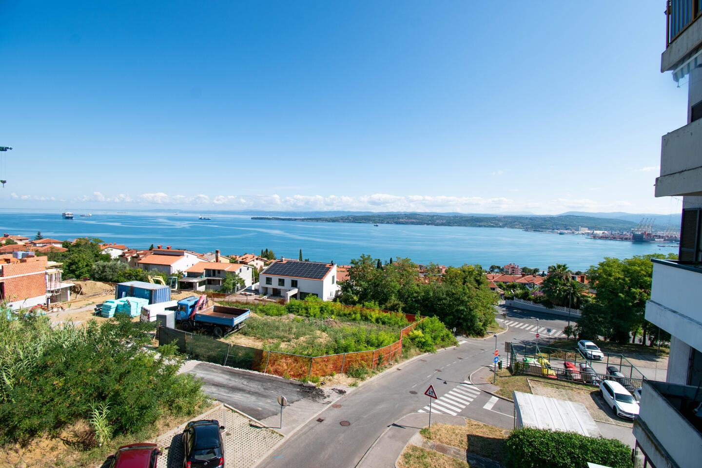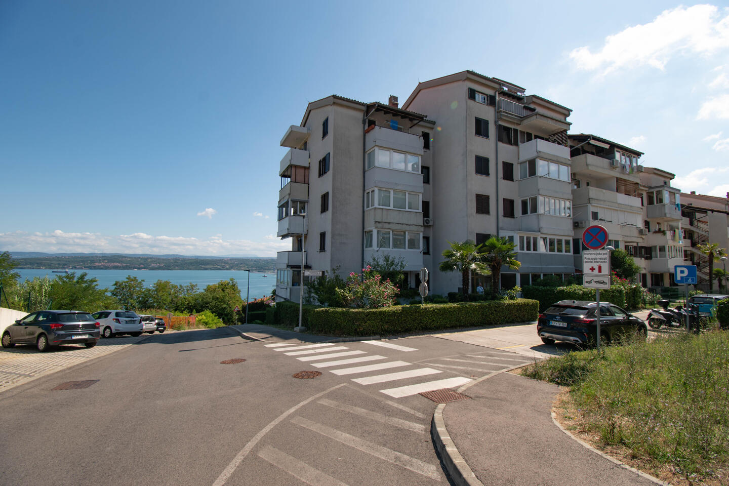 Zastekljen balkon z lepim pogledom na morje prinaša občutek miru, hkrati pa je lokacija izredno praktična: vrtec, šola, trgovina, lekarna in avtobusna postaja so v neposredni bližini, do plaže pa je le nekaj minut hoje. Na voljo so tudi vedno dostopna brezplačna parkirišča.