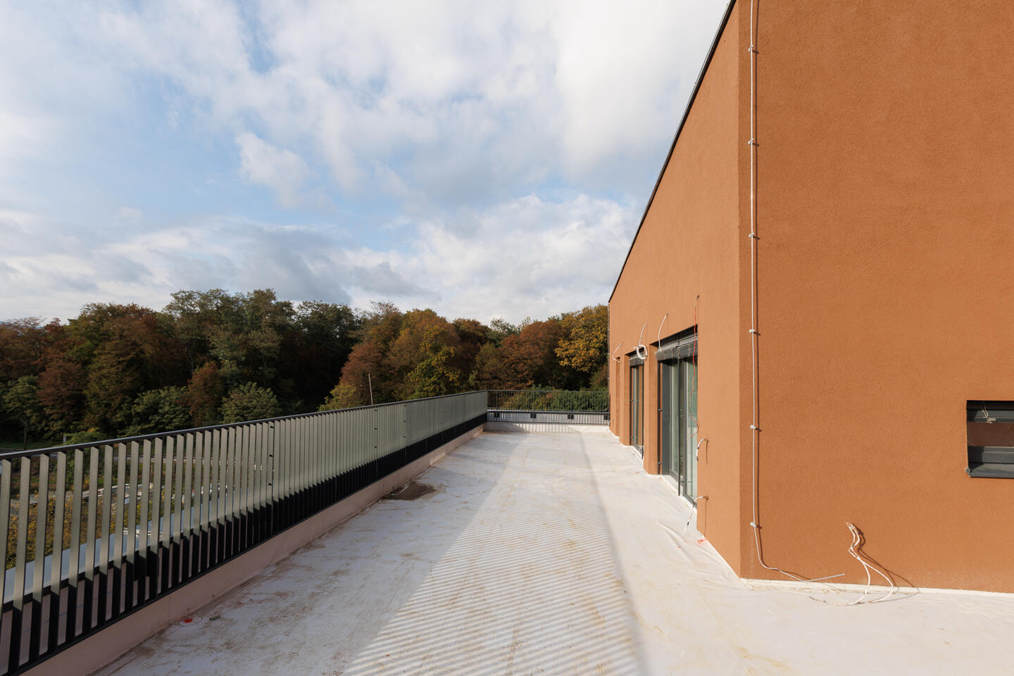 Gradnja temelji na okolju prijaznih materialih: lesena konstrukcija z armiranobetonskim jedrom zagotavlja trdnost in požarno varnost, fasadni sistem WEBER s 15 cm kamene volne pa učinkovito toplotno izolacijo.