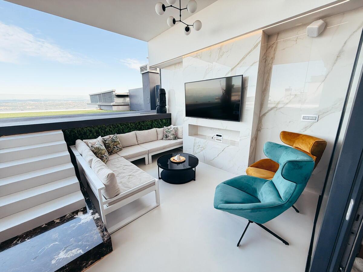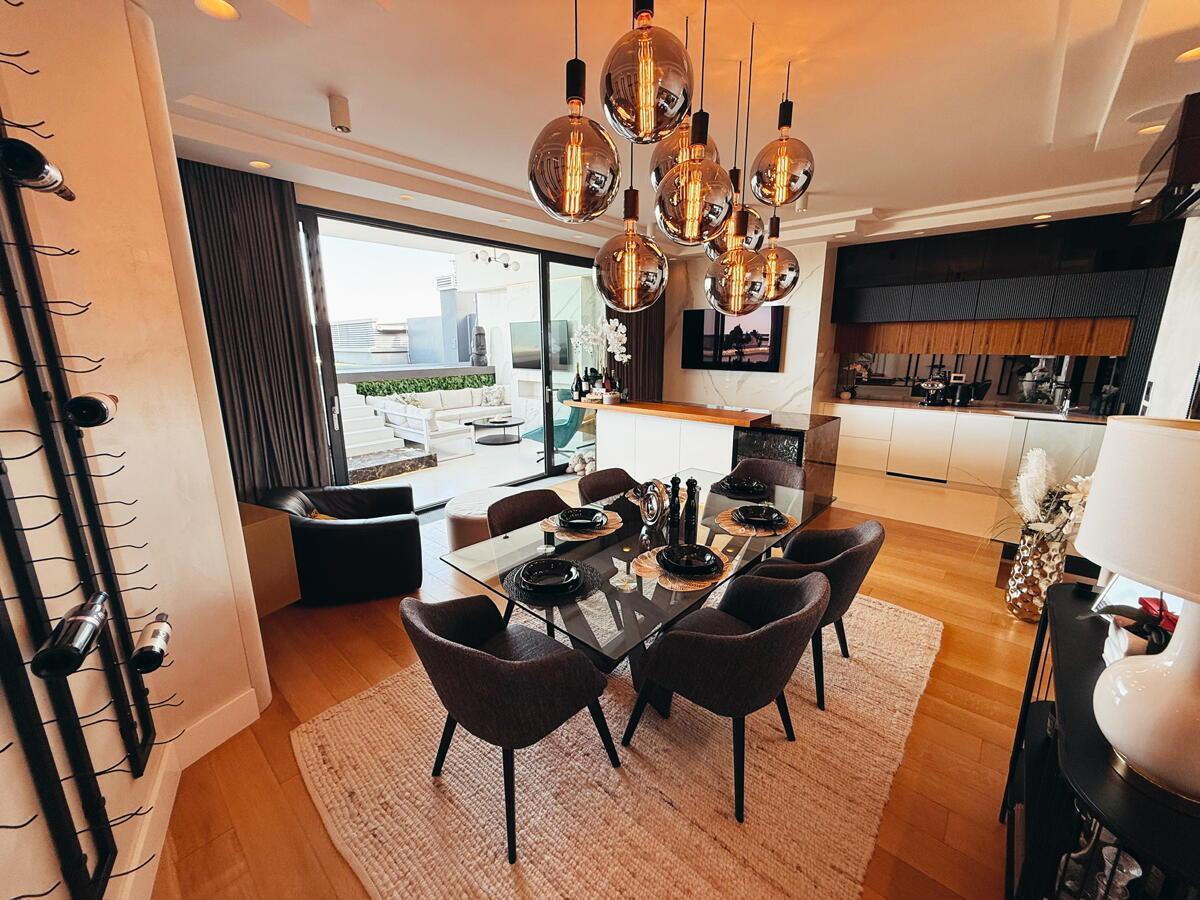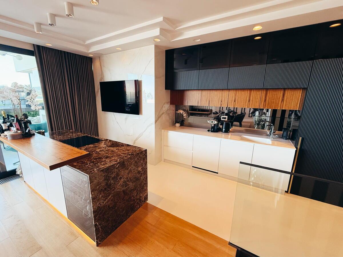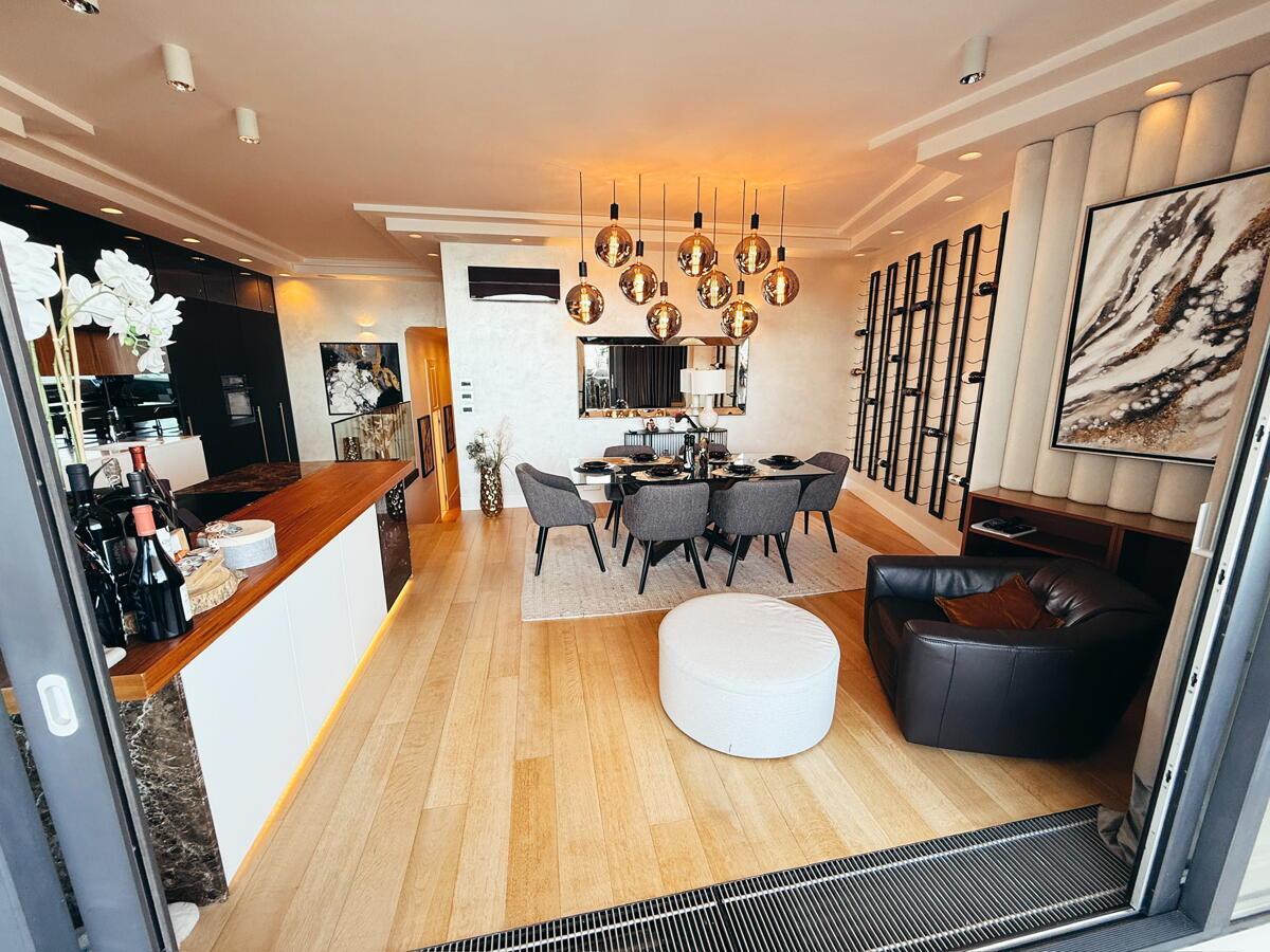 KOPER-Nokturno, NTP 133,11 m2, 3- sobno stanovanje (Penthouse), v stavbi zgrajeni 2010, prvič vseljivi 2017, v zadnji 14. etaži naselja, nadstandardno opremljeno, s pokrito teraso in balkonom ter pogledom na morje, 2 parkinga v garaži, dolgoročno oddamo.