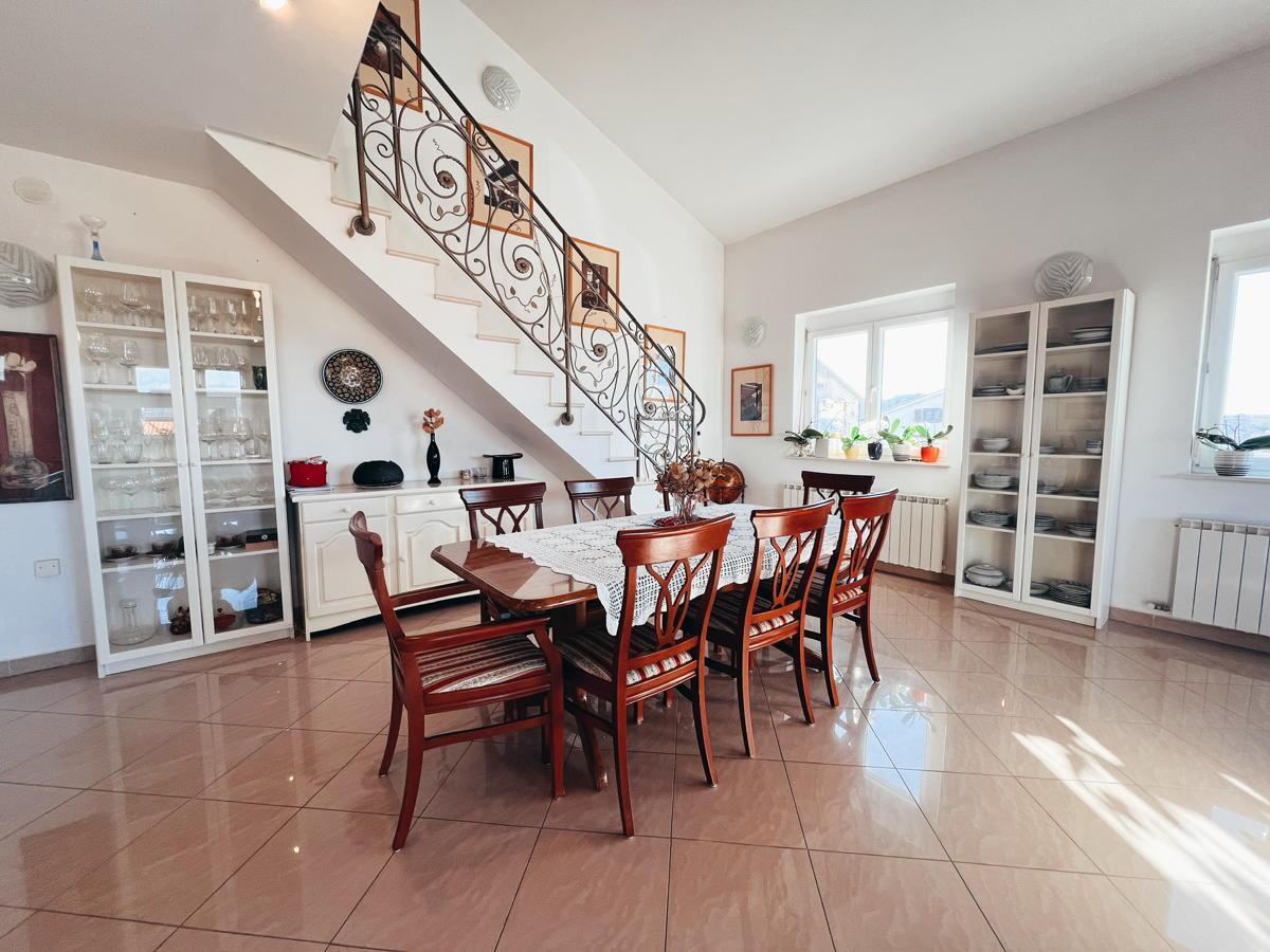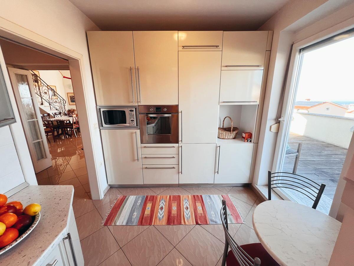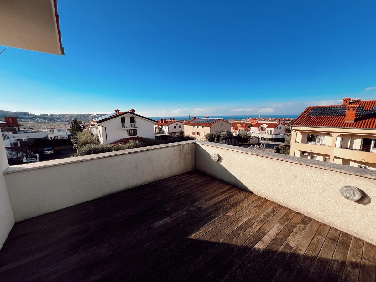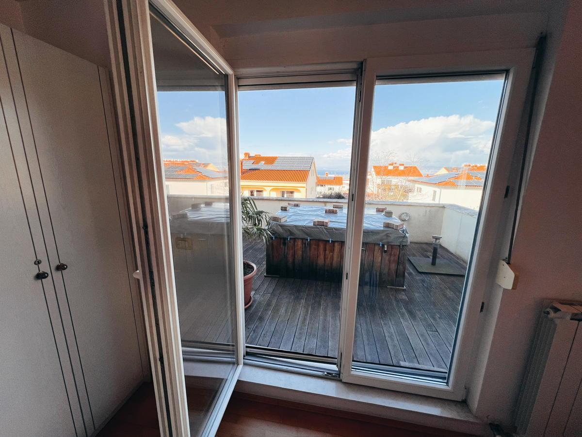 Stanovanje ima veliko teraso s prečudovitim razgledom na morje in okolico. Na terasi je jacuzzi ter dovolj prostora za postavitev velike jedilne mize za druženja. V mansardnem delu je balkon s še lepšim razgledom na morje.