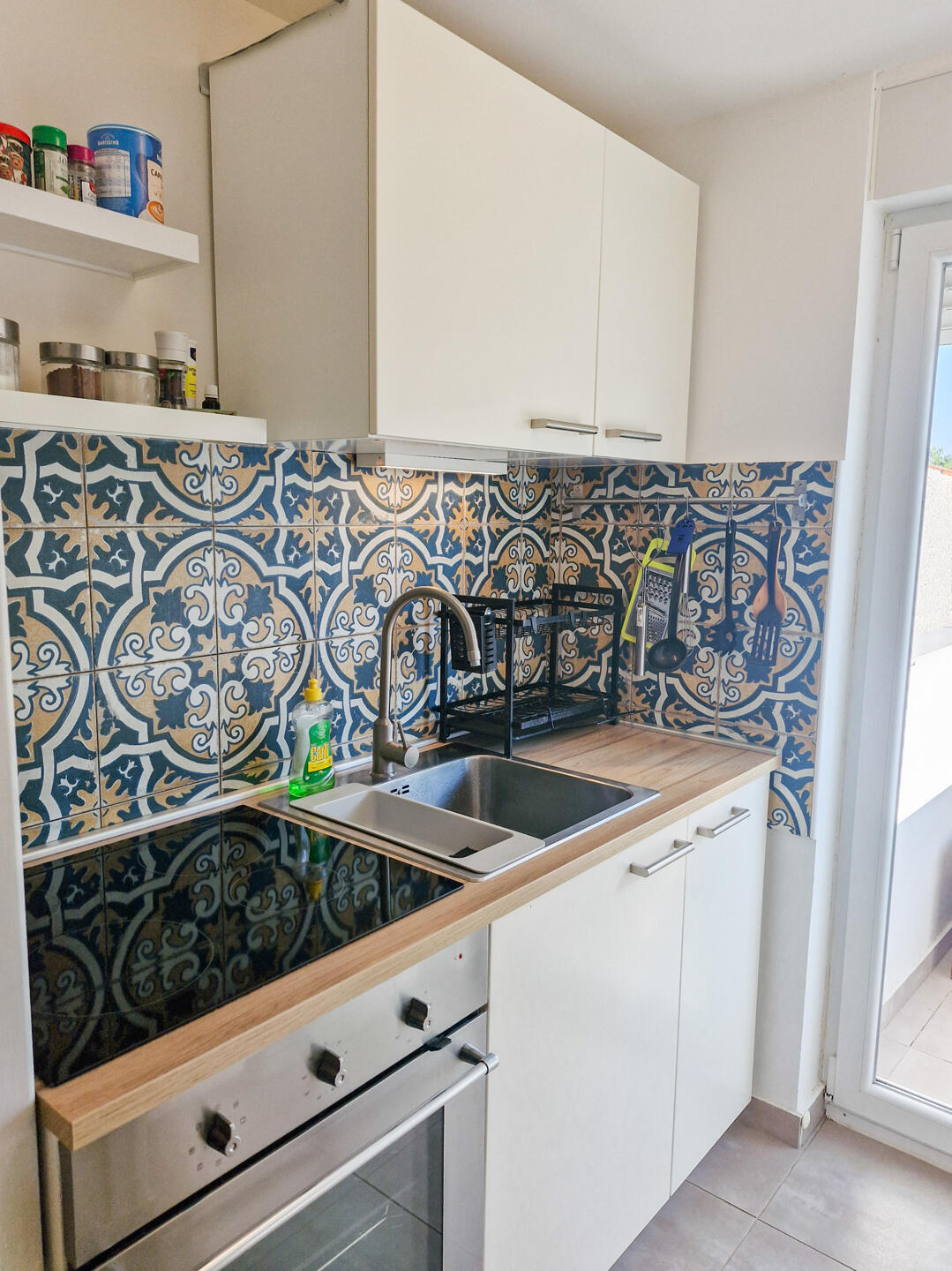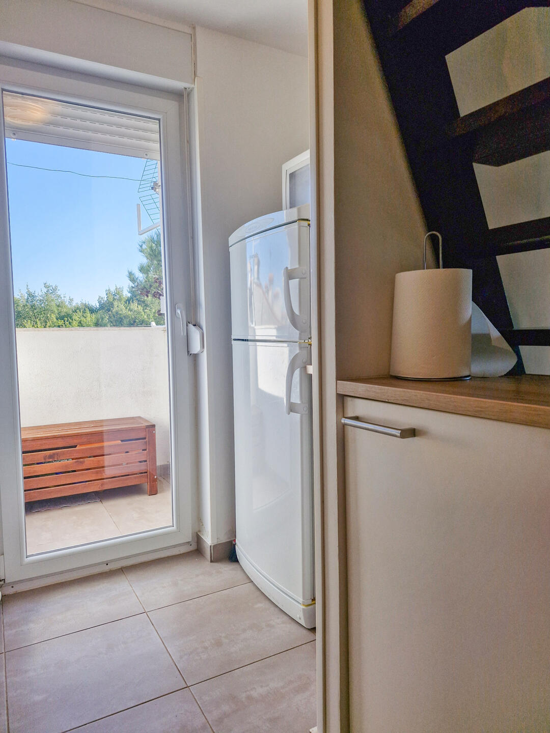 opremljeno kuhinjo z izhodom na drugi odprt balkon