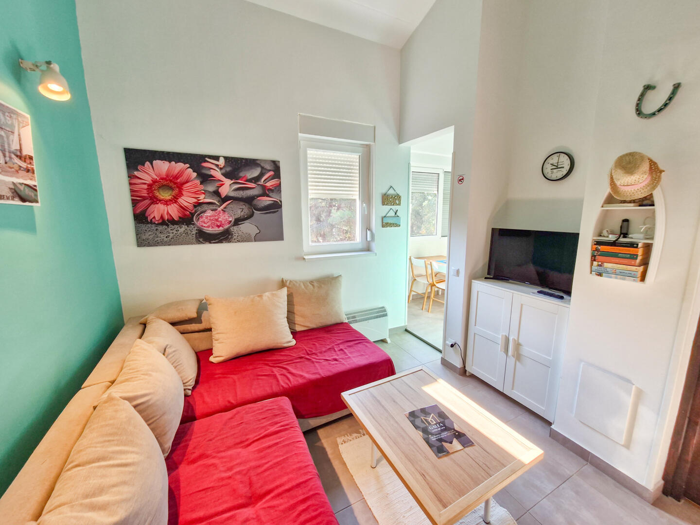 dnevni prostor, s sedežno garnituro, ki jo lahko uporabite tudi kot dodano ležišče