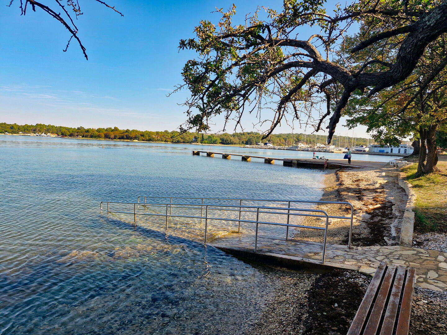 velika mestna plaža s kamenčki in obilo sence je ena najlepših v Istri