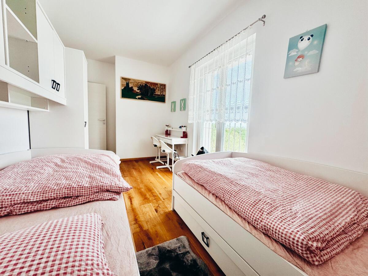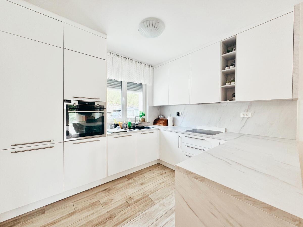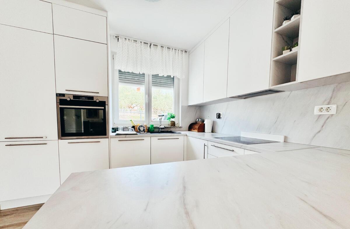 Bivalna površina približno 126 m² je skrbno razporejena za optimalno udobje, vključno s šestimi sobami, od katerih je pet prostorne spalnice. Dodatno udobje zagotavljata dve sodobno opremljeni kopalnici, ki ustrezata vsem potrebam današnjega družinskega življenja.