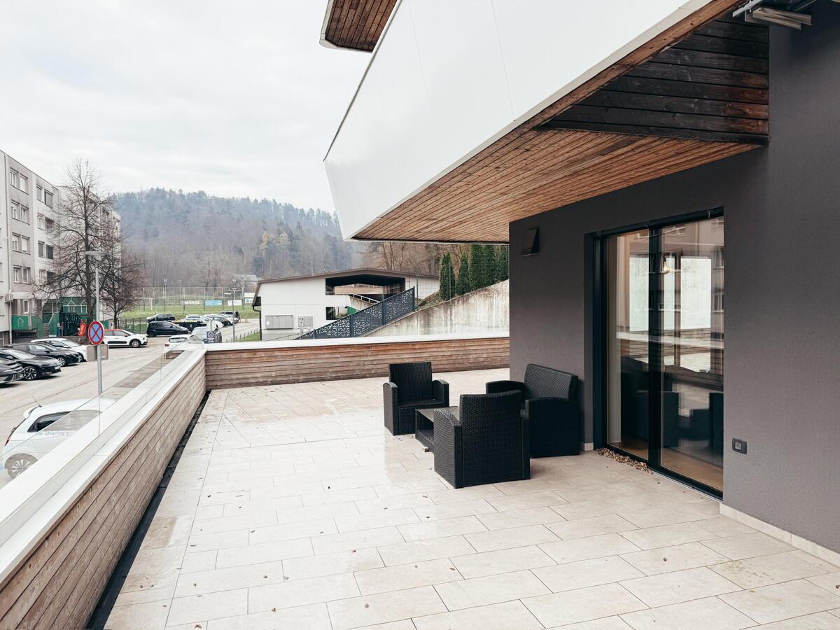 Stanovanje obsega ločeno spalnico, prijeten in prostoren dnevni prostor s kuhinjo ter kopalnico z WC-jem. Posebna dodana vrednost je velika terasa, ki se razprostira okoli stanovanja in ustvarja občutek bivanja v hiši – idealno za sproščanje, druženje ali ureditev zelenega kotička.