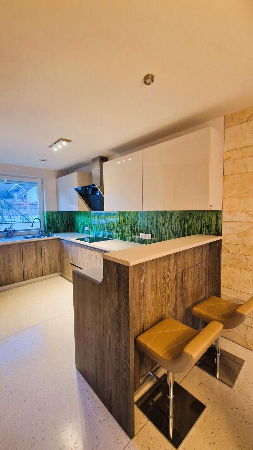 Kuhinjski pulti so iz materiala Ultrapas in omogočajo odlaganje vročih posod.