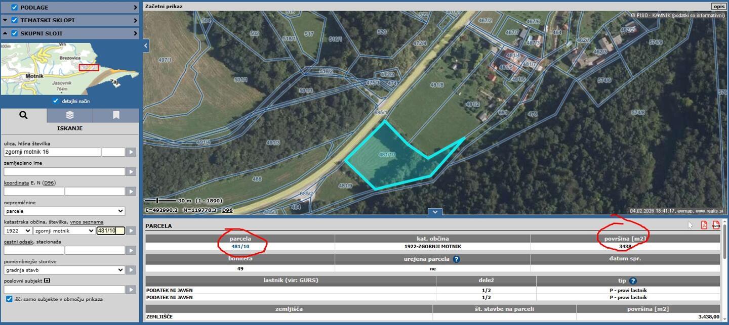 Lastnosti parcele: